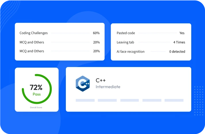 Our platform offers you a seamless and efficient solution for candidate evaluation. Following the assessment, you'll receive comprehensive insights that include skill ratings and performance metrics in real-time. This immediate feedback empowers you to make informed decisions and swiftly shortlist candidates who align with your requirements.